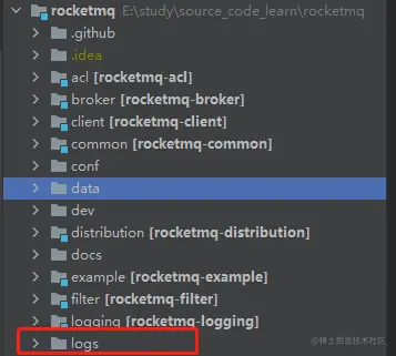 在RocketMQ源码根目录下创建存放RocketMQ运行日志的目录-logs