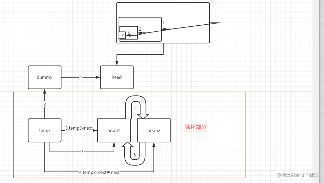 //6.创建一个节点,指向temp的下一个节点的下一个节点