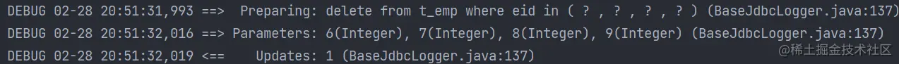 int result = mapper.deleteMoreByArray(new Integer[]{6, 7, 8, 9});