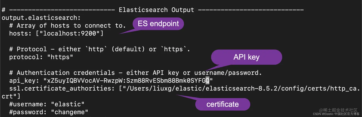 我们需要在 config/elasticsearch.yml 文件中添加如下的部分: