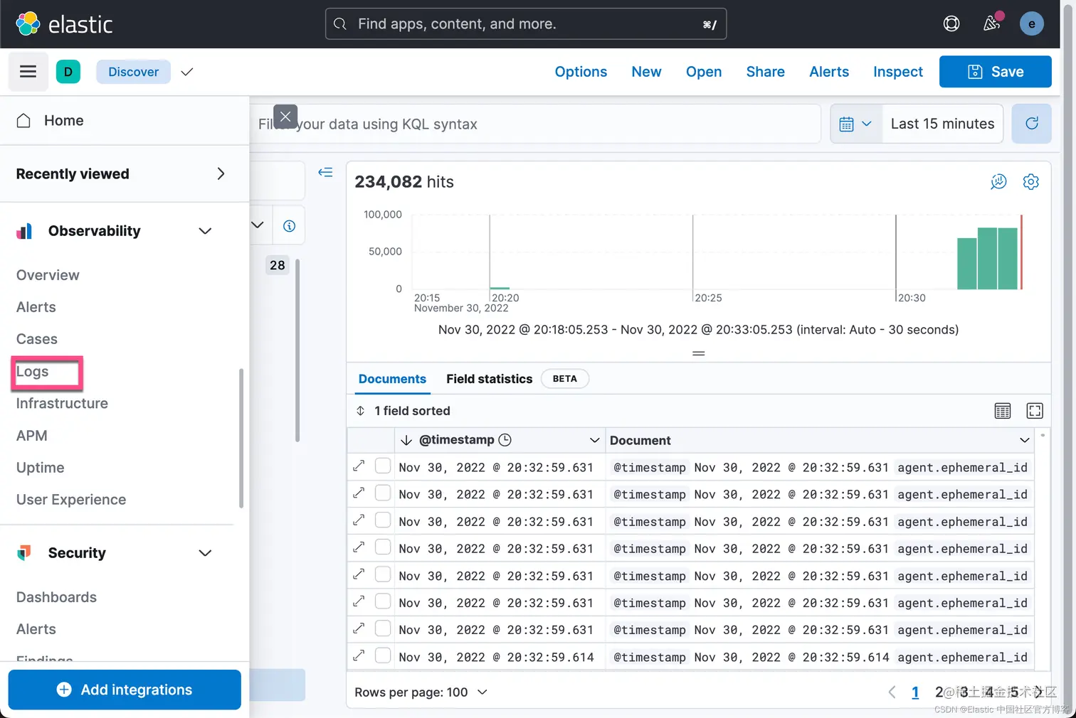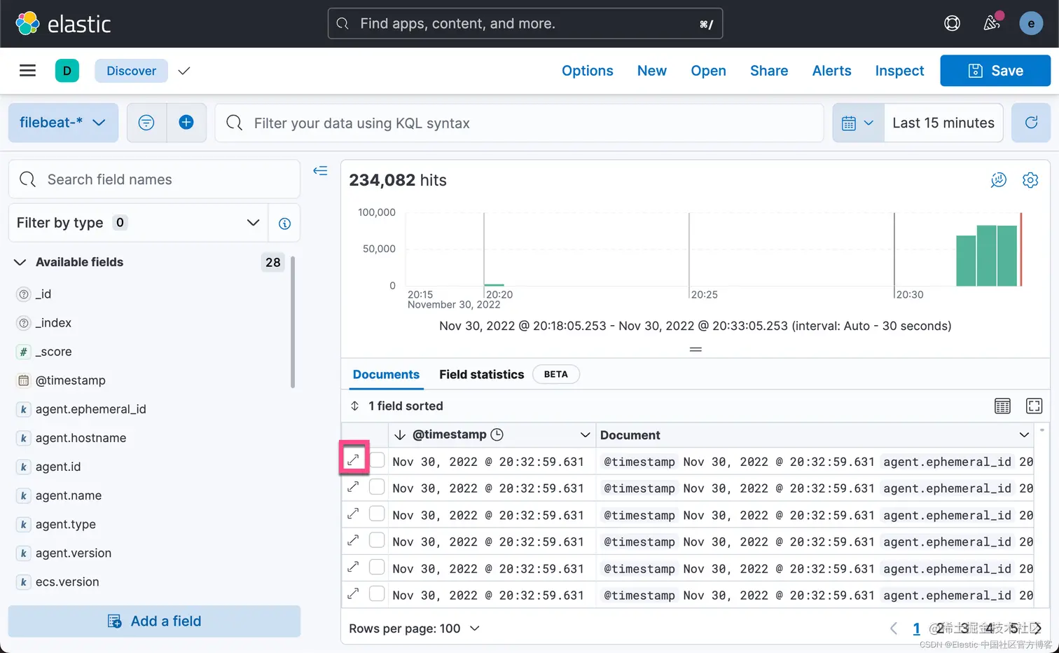 4)重新启动 Filebeat 并查看日志是否按预期流入。