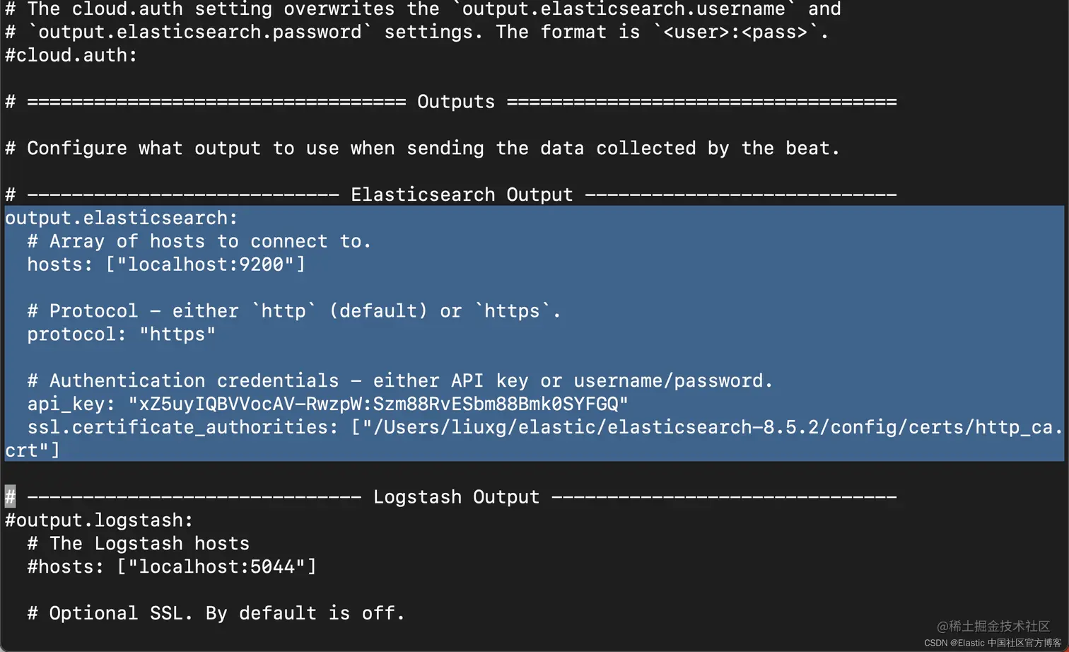 我们把上面的配置添加到 config/elasticsearch.yml 文件的最后面。这个是为了能够我们使用 API key 的方式来访问 Elasticsearch。修改完毕后,我们重新启动 Elasticsearch。这个是为了在下面我们使用 Elastic Agent 来安装 APM 集成。