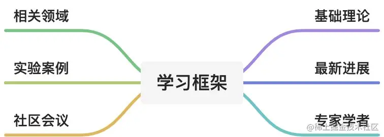 任何内容的学习,你都可以套这个框架,基础理论: 首先就是要学习相关基础知识,核心理论等,这些内容可以来自维基百科,百度百科以及入门教材等。最新进展: 学习完基础理论,你就可以直接去关注该领域的最新发展,最新发展一般来自新闻资讯,论文,案例等里面。专家学者: 这个领域最牛的专家,他们关注什么,想什么,原来有什么样的成就和观点,你需要持续关注他们最新发表的文章,以及与他们相关的报道。社区会议: 除了读书看杂志外,也要学习怎么跟人交流,以前交流的方式通常是面对面,互联网时代大家可以选择网络论坛,网络社区的形式。实验案例: 通常理科、工科的是实验,而文科的是案例,你需要学习的内容,包括知道人家的实验室怎么做的,你是否可以改进、验证。相关领域: 该内容的相关领域都有哪些?许多创新可能会来自相关领域,你需要知道他们涉及哪些近或者远的内容。这个模型在任何时候套用,可以学UFO、学宗教、学材料学等等都是类似。