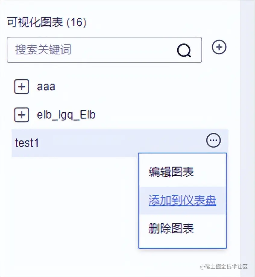 鼠标悬浮可视化图表名称,单击选择“添加到仪表盘”。