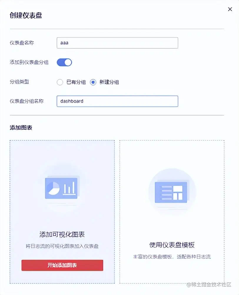 在仪表盘创建页面,单击“创建仪表盘”,配置相关参数。