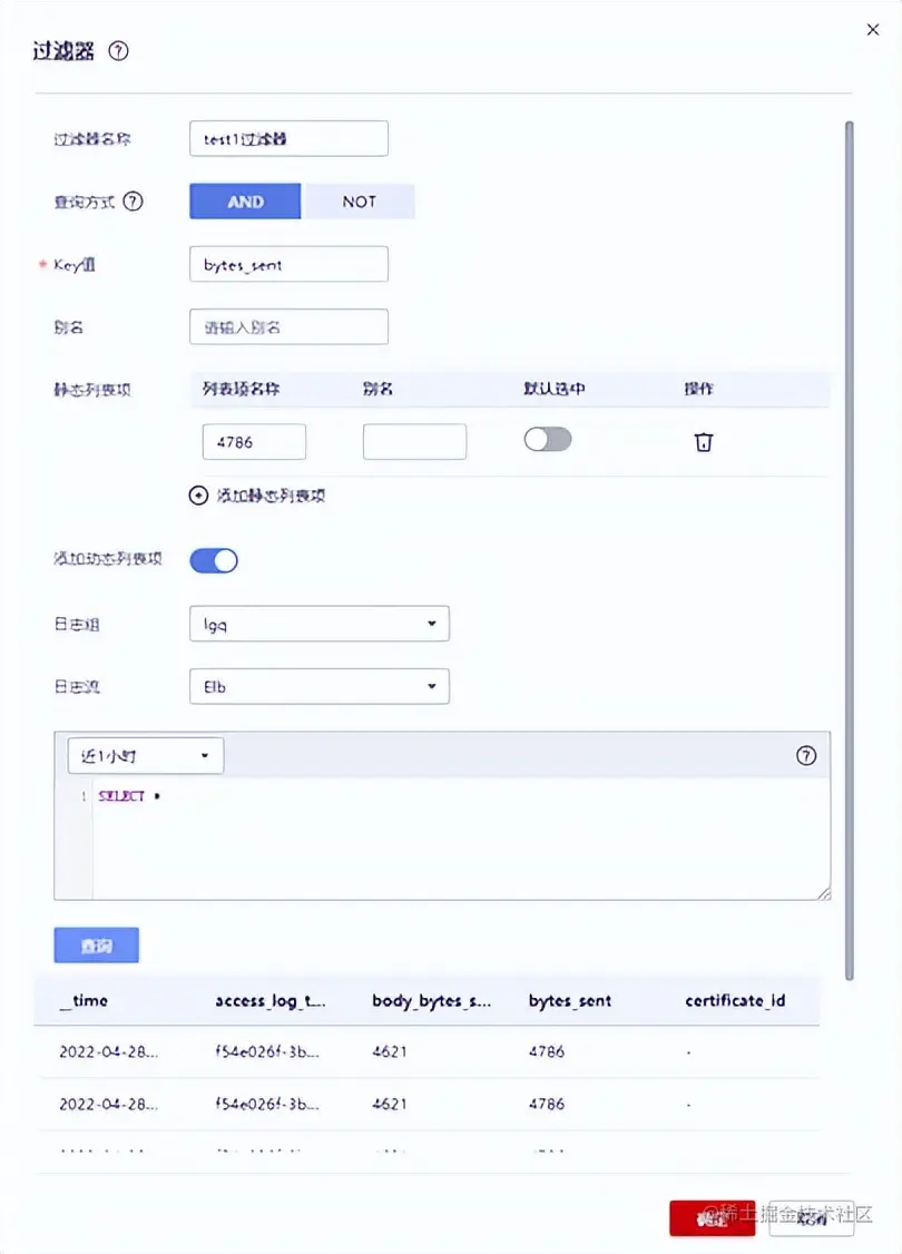 单击“过滤器”,在过滤器页面中,配置相关参数,然后单击“确定”。