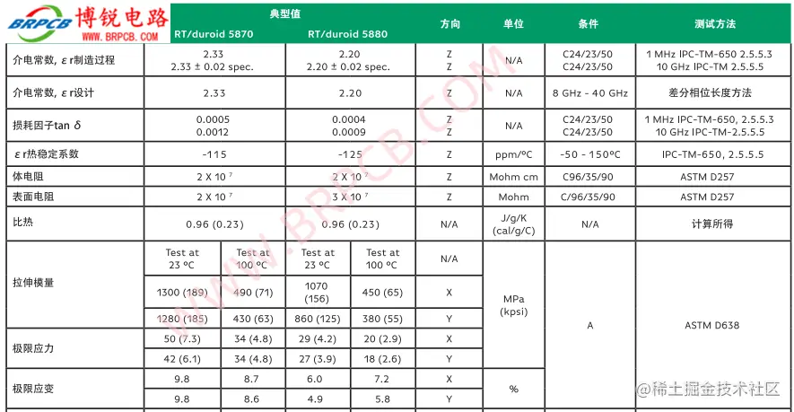 • 极低的介电常数,10GHz IPC-TM 2.5.5.5标准下测量,介电常数为2.20±0.02;