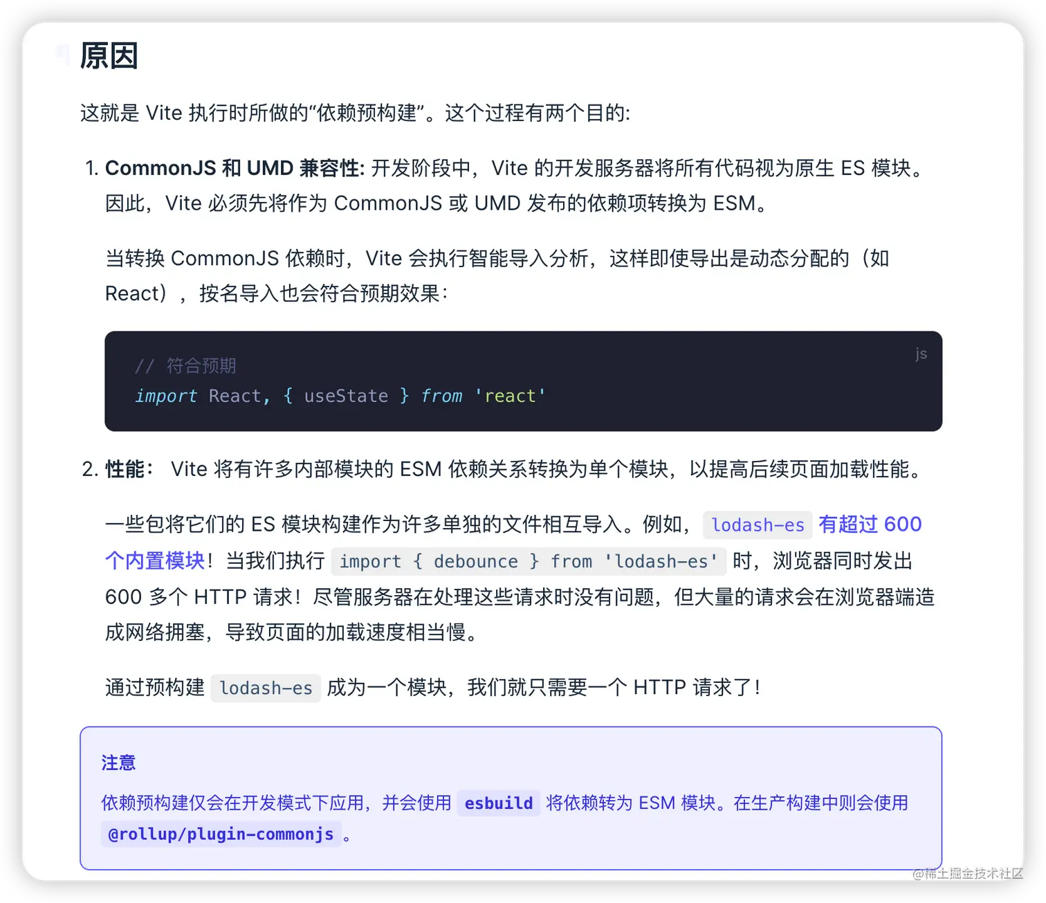 - 生产环境:vite会全权交给 rollup 库完成生产环境的打包,那么此时是怎样考虑路径问题的呢?我们可以先看看vite的依赖预构建过程