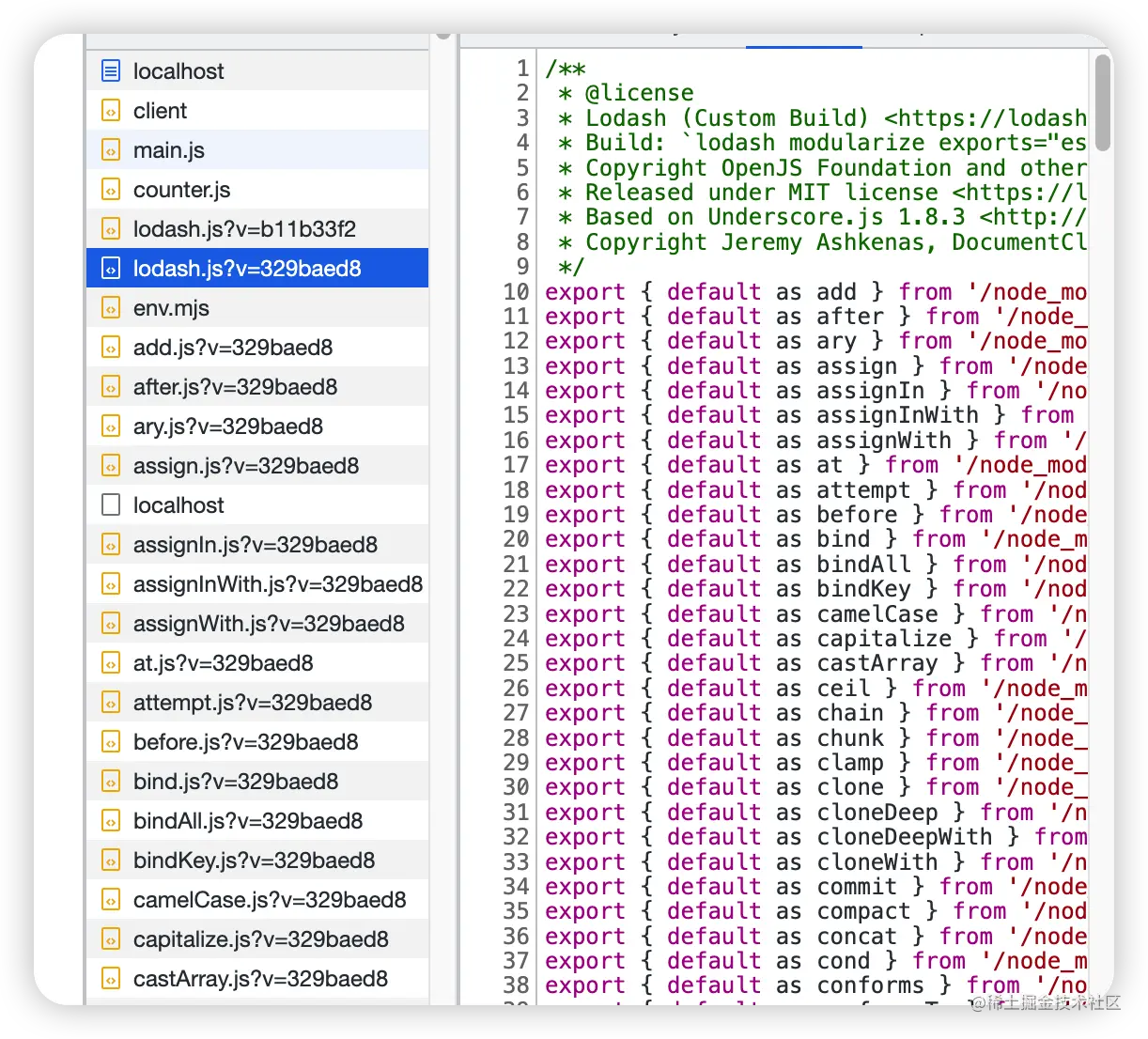我们可以看看下面这个库 lodash-es 这个库是 lodash 通过esmodule导出的,然后又会有很多互相依赖,