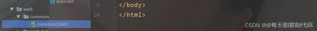 例如:我们都知道web是根目录,那么就在web根目录下面创建一个common目录;然后在common目录下在创建一个common.html文件。