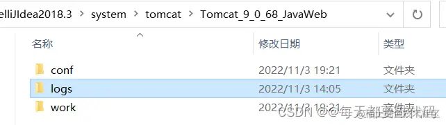 如果使用IDEA,IDEA可以创建多个Tomcat服务器;所以日志文件肯定是和IDEA相关的目录下;启动Tomcat找到下面这句话:Using CATALINA_BASE: "C:\Users\86177.IntelliJIdea2018.3\system\tomcat\Tomcat_9_0_68_JavaWeb"; 这些是参照CATALINA_HOME下的资源生成的一个Tomcat副本: