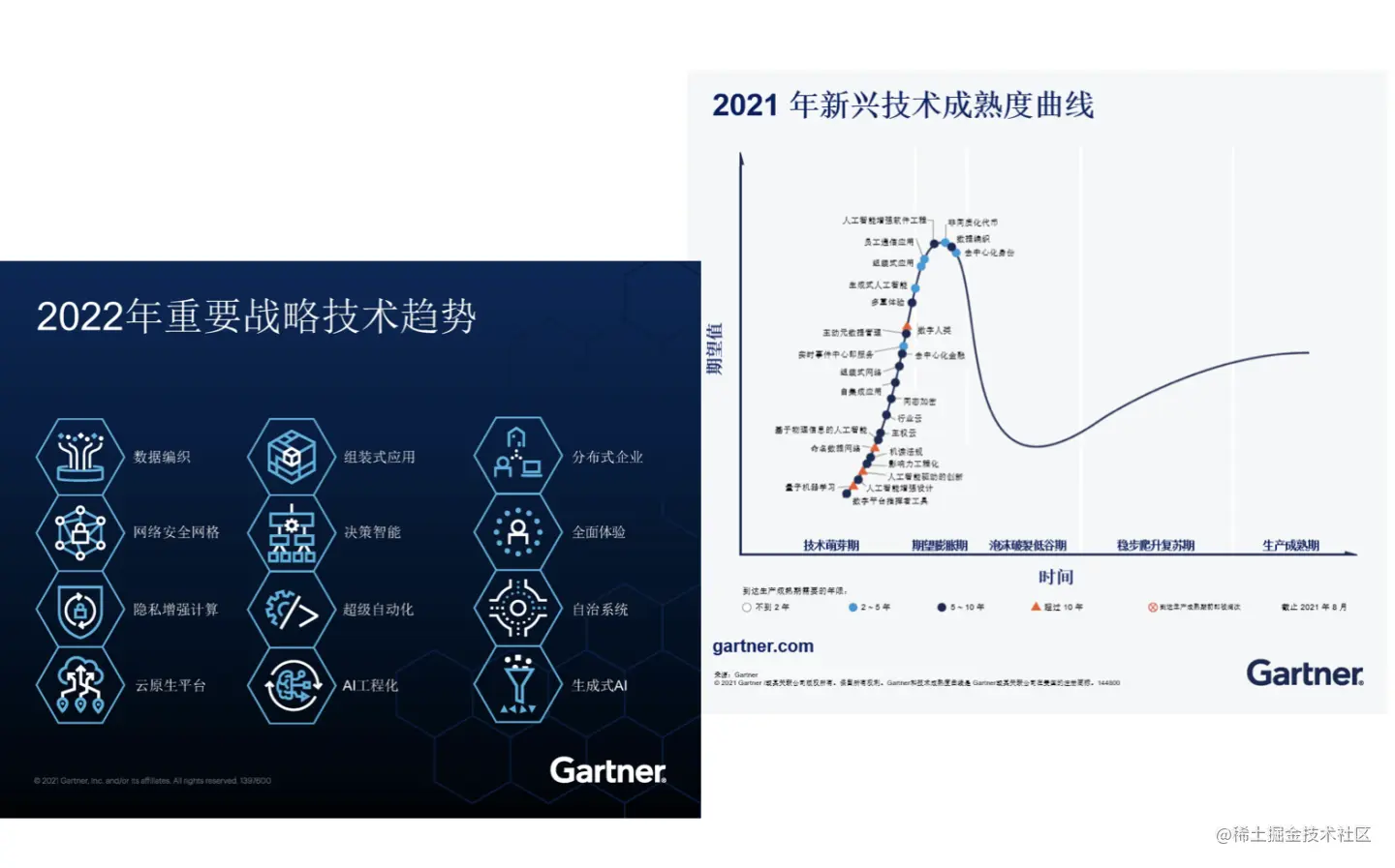 “组装式应用”可以理解为一种技术理念,倡导的是任何企业数字化技术元素均可被组合。全球最具权威的IT研究与顾问咨询公司Gartner一直是技术界的风向标。在2021年新型技术成熟度曲线中,我们看到:组装式应用、实时事件中心即服务、生成式人工智能、员工通信应用、非同质化代币、去中心化身份等6种Gartner认为能在2-5年内发展成熟的关键技术。其中,「组装式应用」已连续2年被列入技术领域的重要战略技术趋势,可见该技术的发展并非技术炒作,而是市场的真实需求。