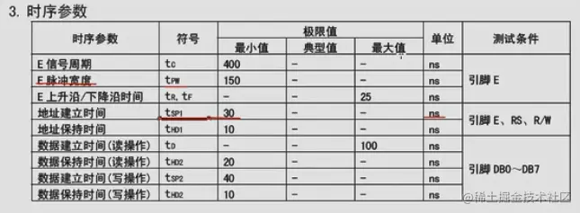 我们只看写的,首先RS,RW变低,过一段时间,再给E一个高脉冲,持续一段时间,再拉为低电平,持续一段时间,再将RS、RW变回高。具体写程序再看。