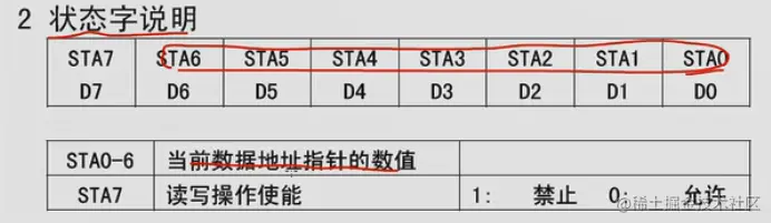 数据指针,也是指令,要先设置数据指到什么位置,然后再写数据,不能直接写0-27,前面要有个80H+,80H+1地址就是01,80H就是00。