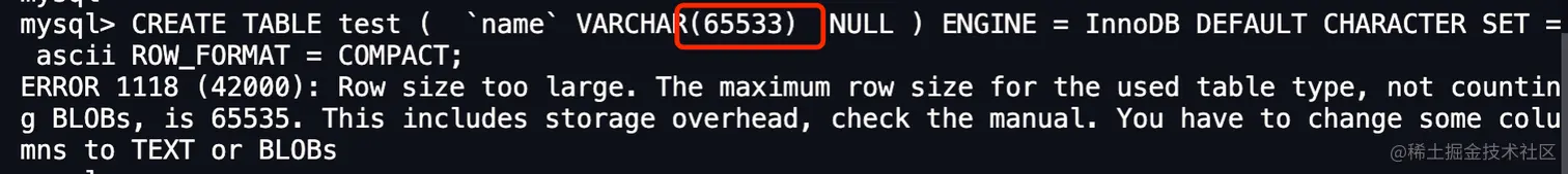 可以看到,还是不行,接下来看看 varchar(65532) 是否可行?