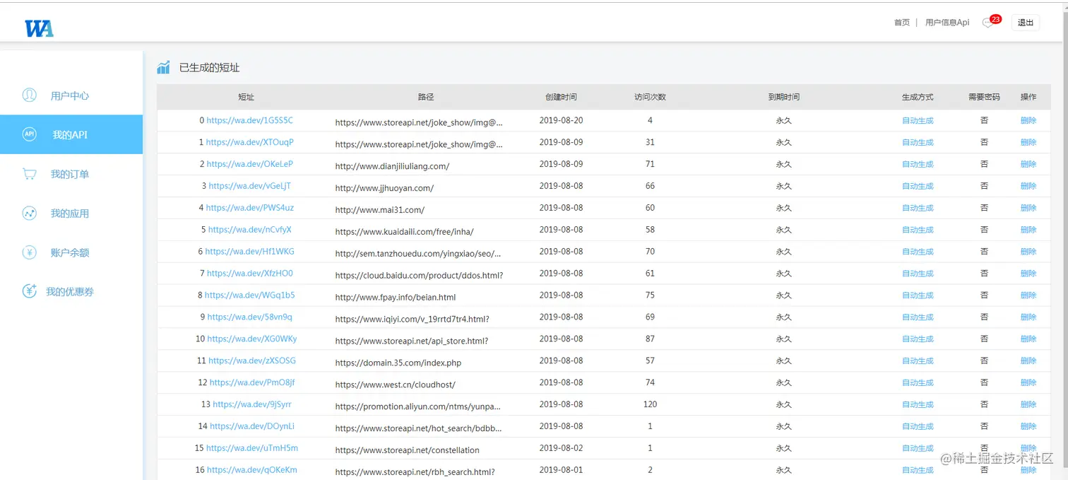 我们需要在挖数据后台去获取和开通api的权限,只要注册登录到后台,选择我们需要的短链接api,自动生成短网址。也可以选择绑定自由域名,从而实现生成自己域名的短链接。