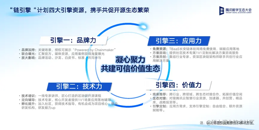 近期,长安链推出“链引擎”计划,为开源技术应用方提供品牌力、技术力等更多价值赋能,邵兵介绍说:“链引擎"计划,旨在汇聚产业各方生态力量,支持好重大关键场景落地,推动长安链加速成为数字经济的可信基石,促进产业协同与创新,实现价值共生共汇。”