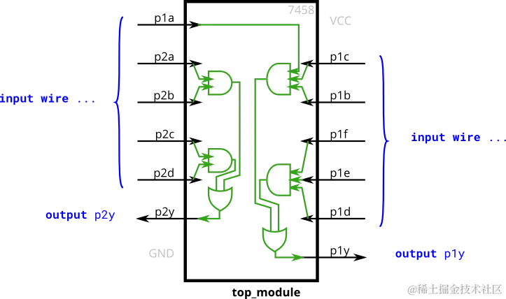 问题:创建一个与 7458 芯片功能相同的模块,它有 10 个输入和 2 个输出
