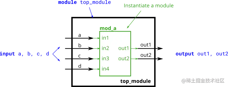 mod_a mod_a_inst(out1,out2,a,b,c,d);