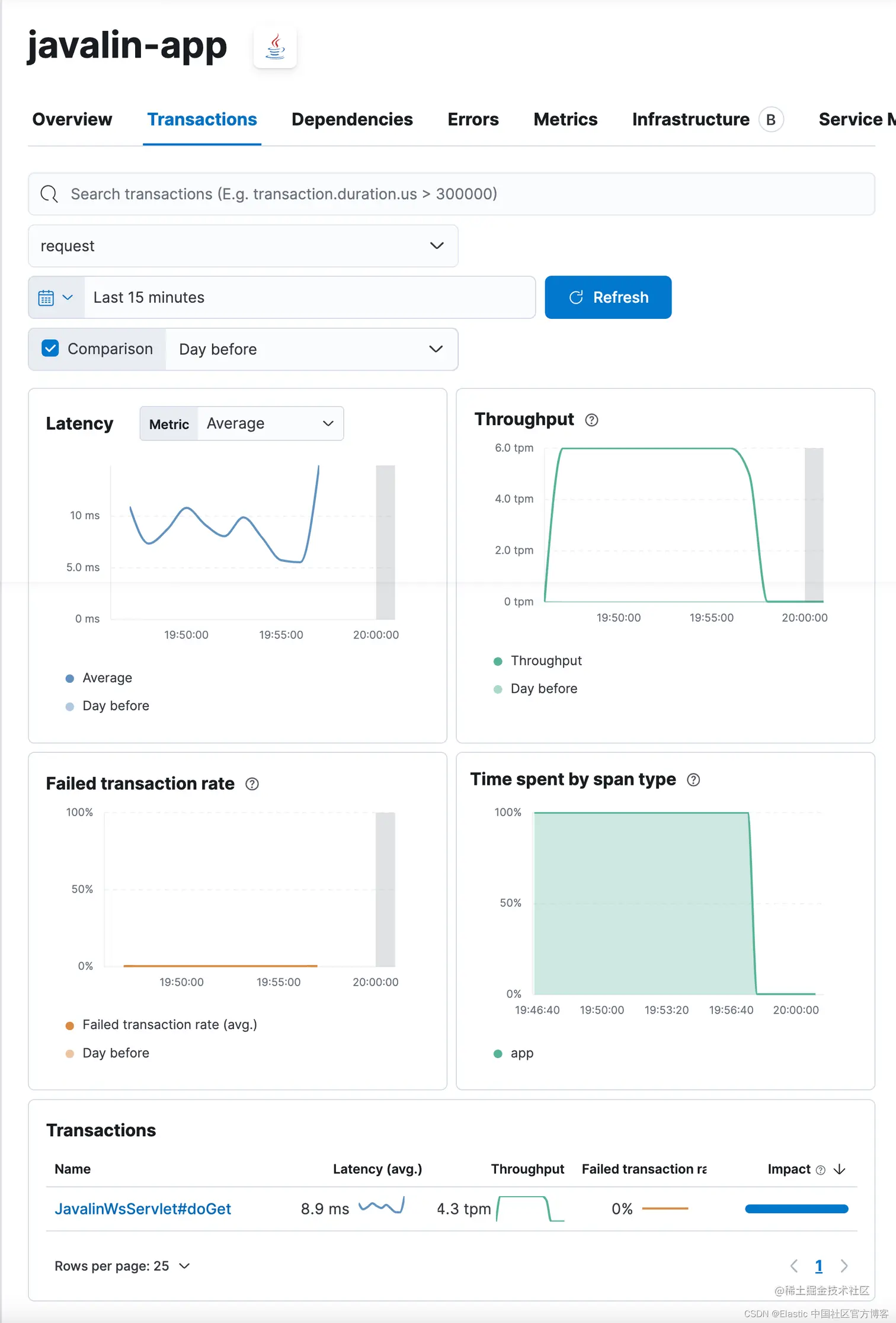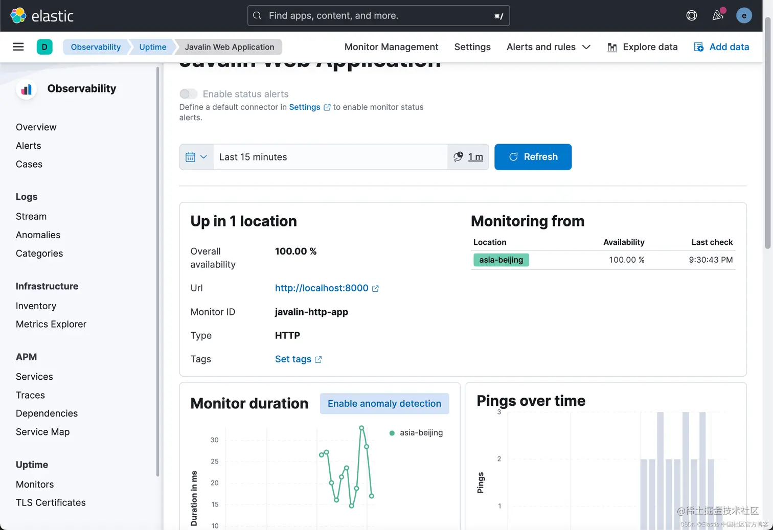 这篇文章是继上一篇文章 “Observability:从零开始创建 Java 微服务并监控它 (一)” 的续篇。在上一篇文章中,我们讲述了如何创建一个 Java web 应用,并使用 Filebeat 来收集应用所生成的日志。在今天的文章中,我来详述如何收集应用的指标,使用 APM 来监控应用并监督 web 服务的在线情况。