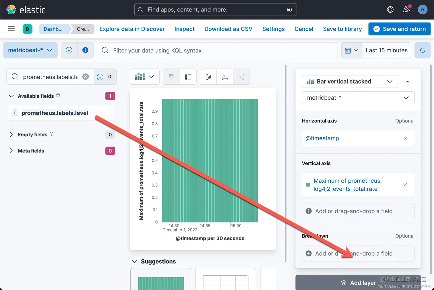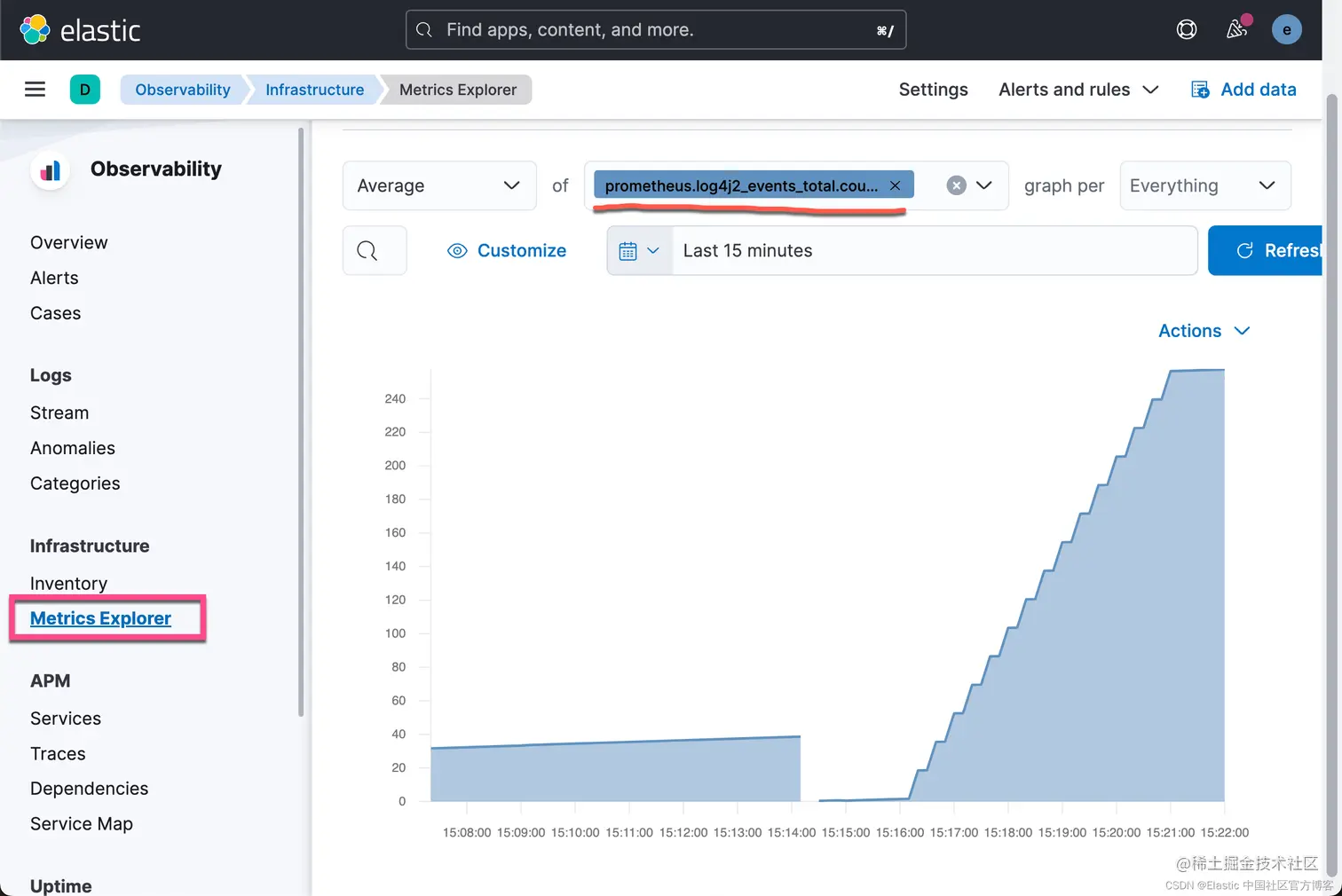 为了从不同的角度查看你的应用程序,让我们获取一些指标。在此示例中,我们将使用 Metricbeat Prometheus 模块将数据发送到 Elasticsearch。