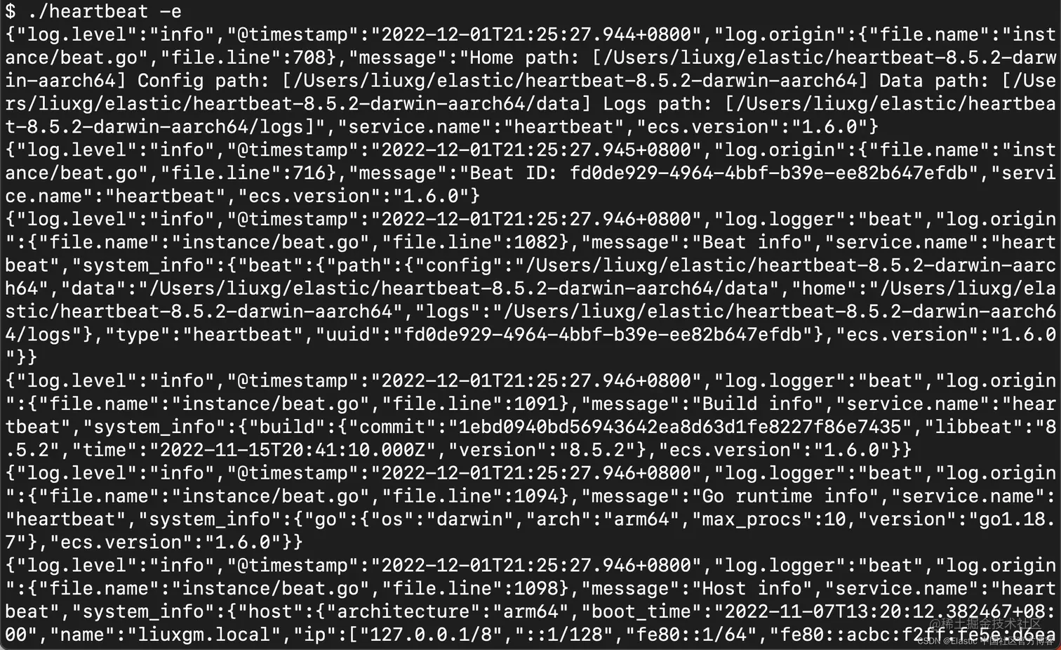 要将正常运行时间数据发送到 Elasticsearch,需要 Heartbeat(轮询组件)。 要下载并安装 Heartbeat,请使用适用于你系统的命令。我们可以到地址 Download Heartbeat • Uptime Monitoring & Elasticsearch | Elastic 下载适合你 Elasticsearch 的版本。针对我的 macOS,我使用如下的命令: