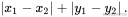 例如在平面上,坐标(x1, y1)的点P1与坐标(x2, y2)的点P2的曼哈顿距离为: