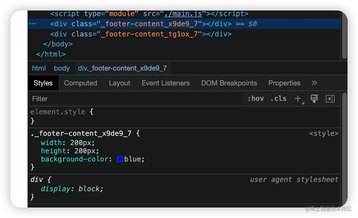 - 同时创建一个映射对象{ footer: "_footer_i22st_1" }