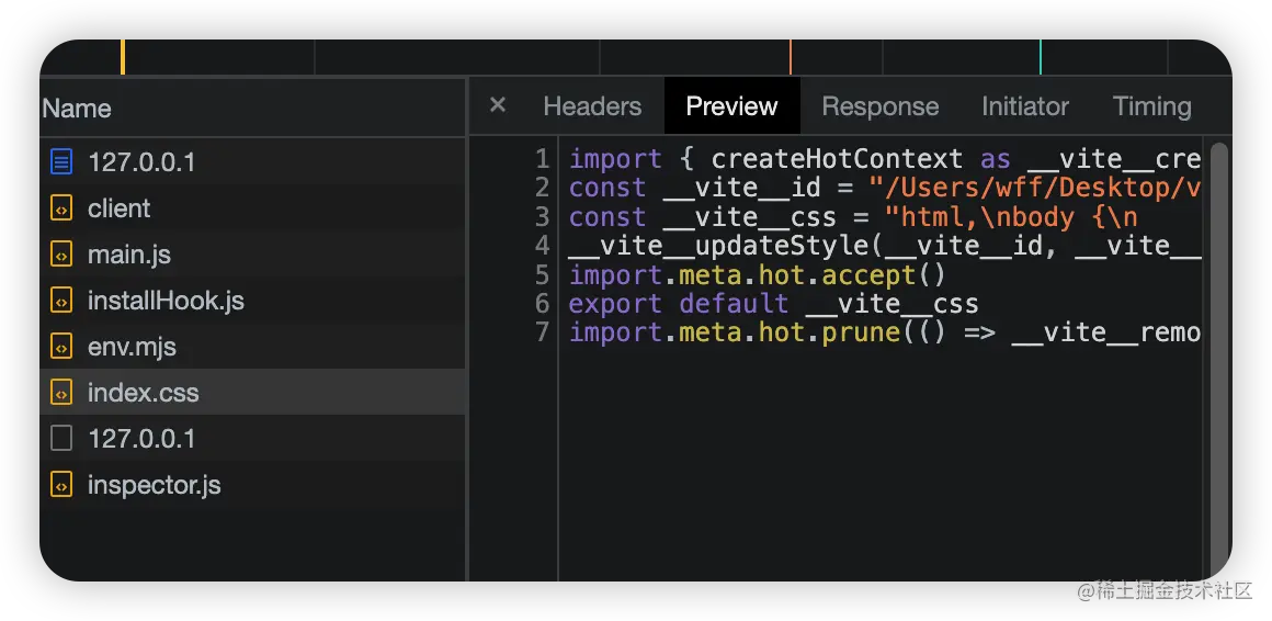 将该 css 文件中的内容直接替换为js脚本 ( 方便热更新或者css模块化 ),同时设置 Content-type 为 js,从而让浏览器以js脚本的形式来执行该css的后缀的文件