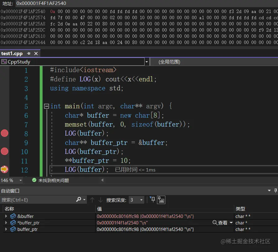 **buffer_ptr = 10;//改变的是指向buffer指针对应的值,从0变为10