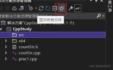 vs自动生成的文件结构非常混论,建议点击显示所有文件按钮后,添加src文件夹存放源代码。