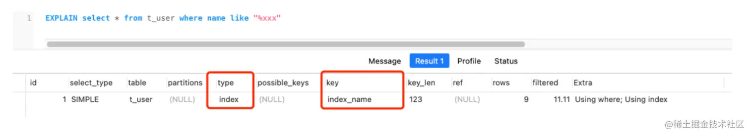 记得在讲索引那一篇的时候,我们提到如果仅仅是尾部模糊查询,索引是不会失效的。而如果是头部模糊匹配,索引失效,但是,头部模糊匹配真的会失效吗?