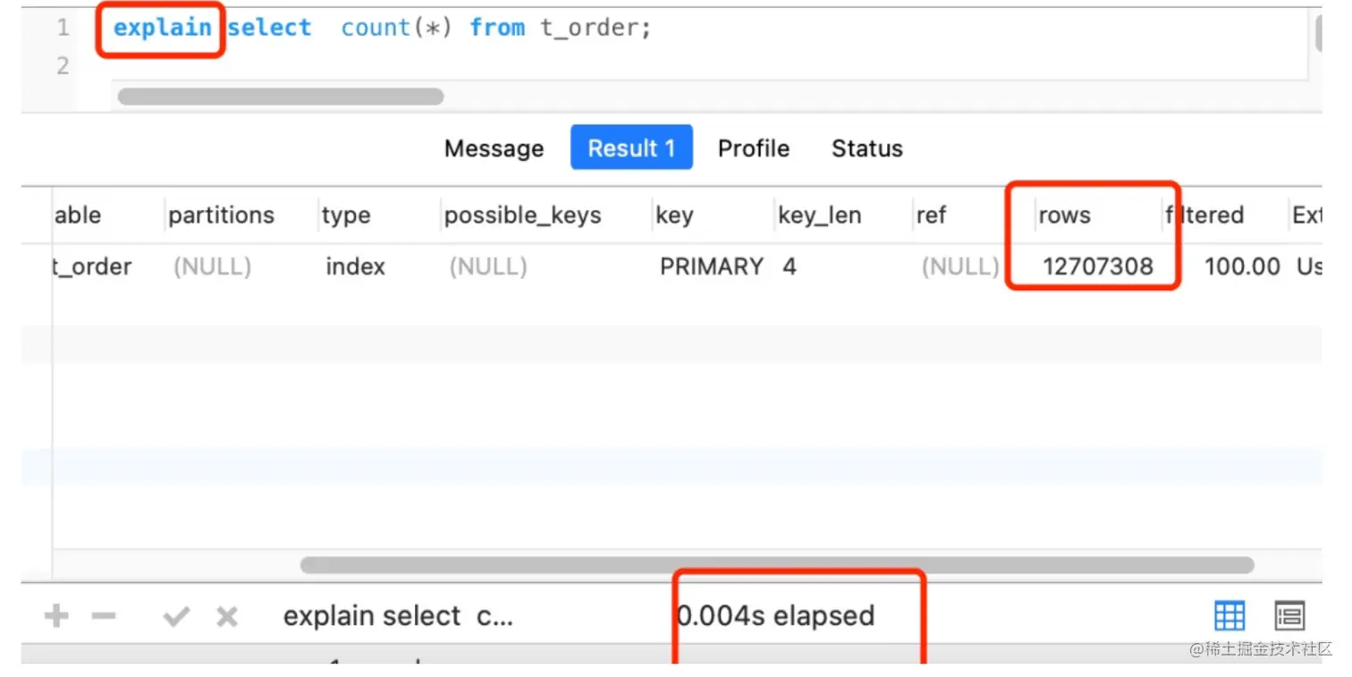 如果我们不需要太准确的数据,我们可以使用Explain分析语句: