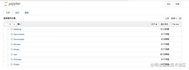 5、接着又会打开一个浏览器界面(用户家目录),如图所示,这样Jupyter Notebook就启动成功了。