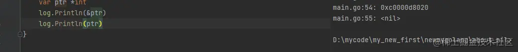 自然,仍然和切片类似,对于 nil 的指针,我们可以正常打印指针自己的地址,以及直接打印这个指针指向的值