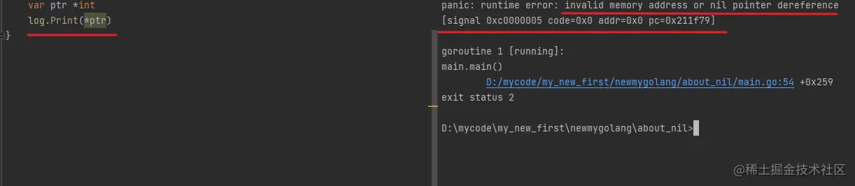 nil 的指针,异常点和前面说到的切片 slice 类似,当访问空指针上的值的时候,就会出现 panic