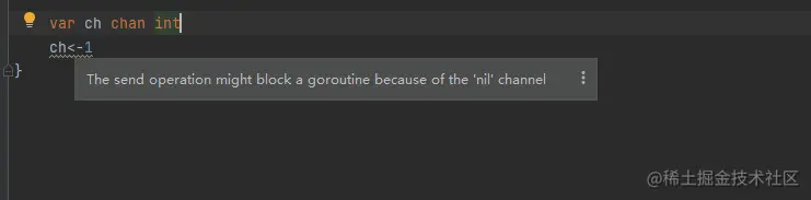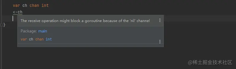 从 nil 通道中读取数据会阻塞: <- ch