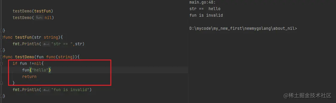 例如我们传入的参数是一个函数的时候,具体的实现又需要这个函数去做业务,那么,这个时候我们传入了 nil,自然是会出问题的
