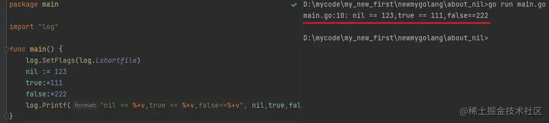 log.Printf("nil == %+v,true == %+v,false==%+v", nil,true,false)