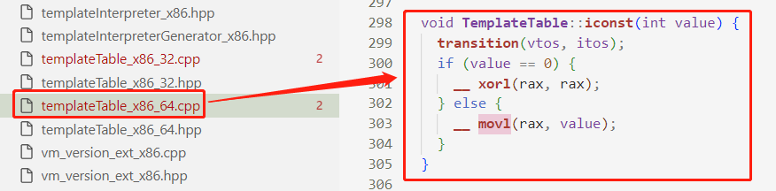 模板解释器将每个字节码指令都映射为一个函数,就是按每个字节码来命名一个函数。