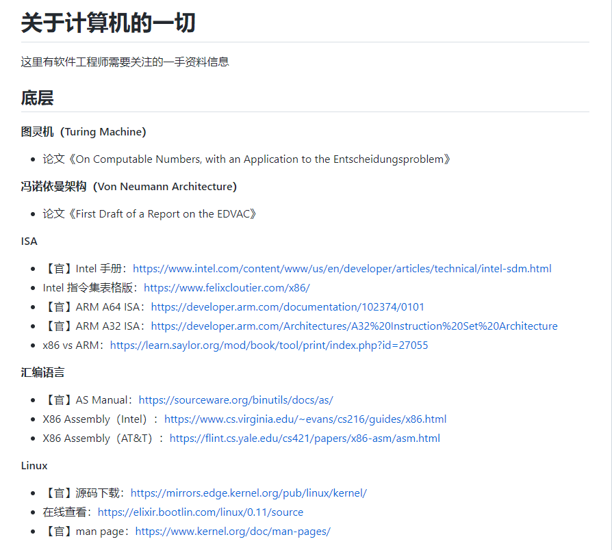我希望这里成为我今后学习技术或分享技术的唯一资料入口,这里会保留所有最原汁原味的一手信息,包括手册、官方文档、源码,以及个别非常优质的对一手资料进行简化、格式化、结构化,而不是自行理解和篡改的网站或博客。