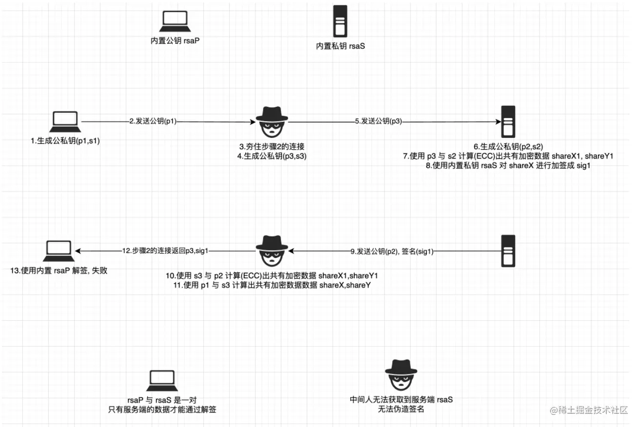 - ECDH 本身的协商过程是"明文的", 协商出共享加密数据后使用该数据对 body 进行加密传输才是"安全的"