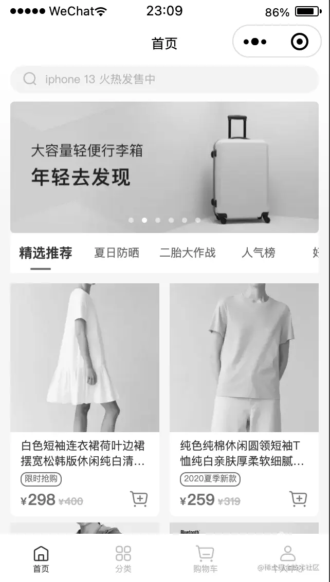 这是我们的小程序页面,想要整个颜色变灰,只需要按照我们刚才所说的方法,在app.wxss中添加如下内容即可