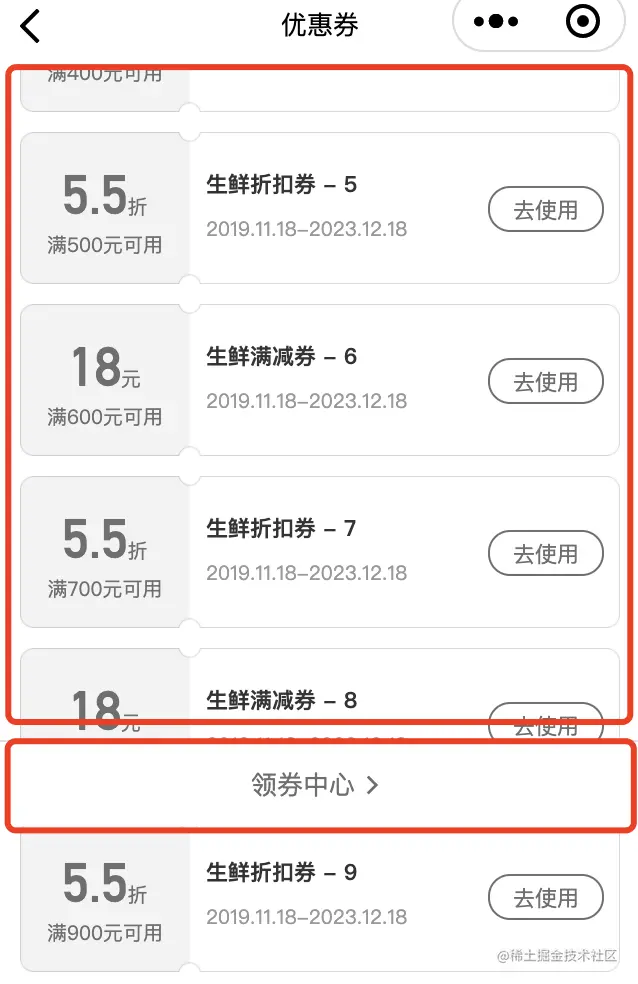 还有优惠劵列表中有一个领劵中心的按钮,本来是吸底,现在直接在我的页面中了