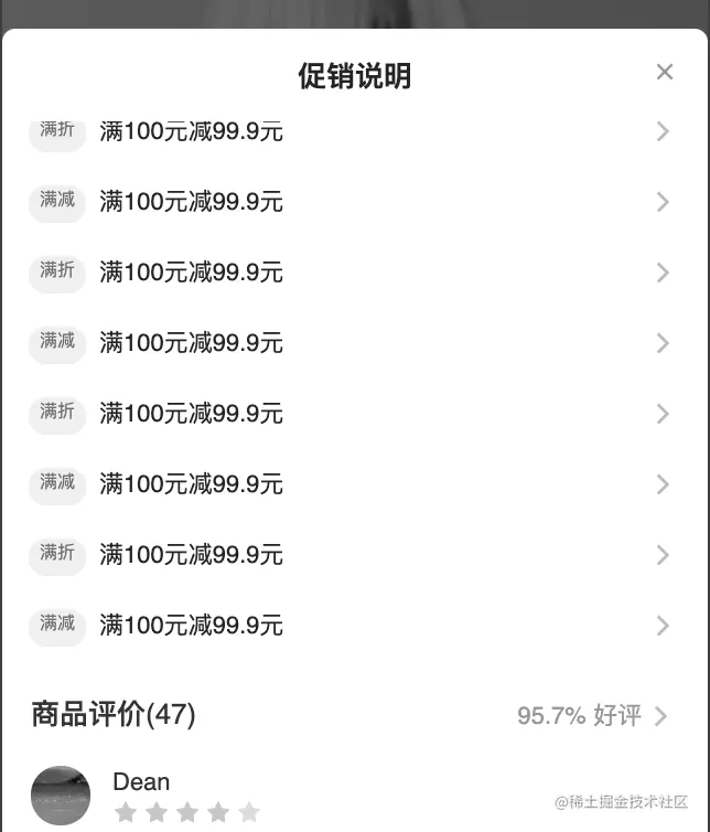 但是我看业务的截图,发现事情并没有我想象的那么简单,不是颜色问题,而是布局乱了,线上大bug,我的领劵的弹窗点开直接在页面中了,本来不可见的商品评价都出来了