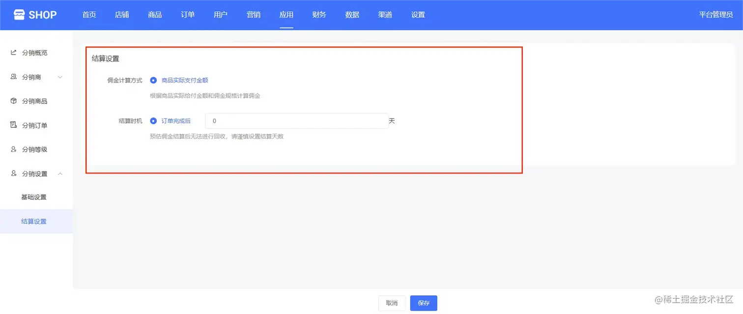 (单商户高级版商城系统—分销应用—结算设置)