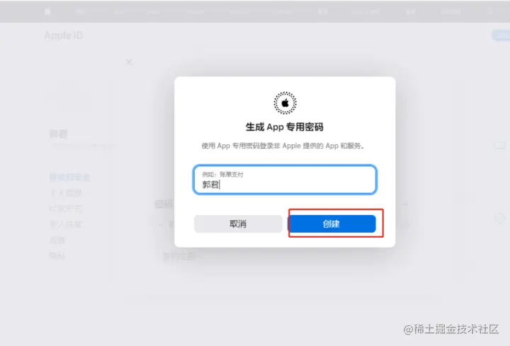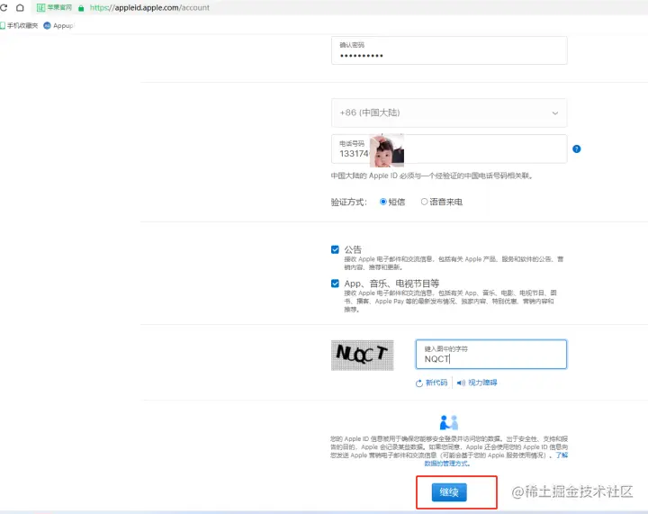 生成IOS app专用密码教程 小马学习iOS开发 2022-12-02 643 阅读1分钟 1.如果没有APP账号的话,点此链接复制到浏览器打开appleid.apple官网,然后点击“创建您的APP ID” 。 填写完下面资料,密码的注意事项在红圈区域。 填写完信息点击“继续”。 依次输入邮箱收到的验证码。 输入短信验证码。 进入这个页面,App ID账户就创建成功了。 7.跳转到APPID页面中,点击“App专用密码”中的三点 输入账号,密码即可生成专用密码(后面IPA到苹果后台也会使用到此专用密码)