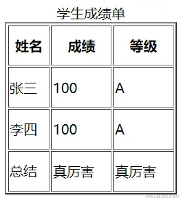 | th | 表头单元格 | 表示一列小标题,通常用于表格第一行,默认内容文字居中加粗显示 |