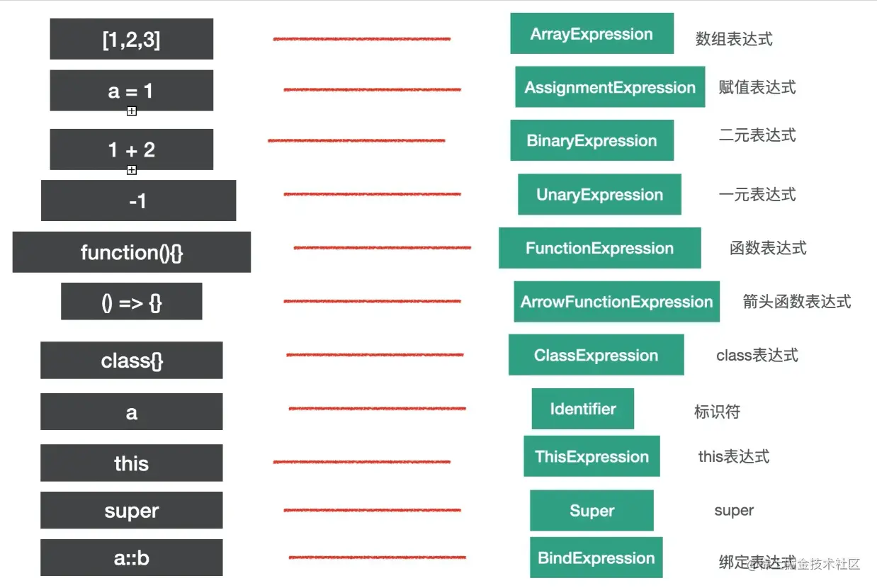 - Statement 是语句的意思,比如 break、continue、debugger、return 或者 if 语句、while 语句、for 语句,还有声明语句,表达式语句等