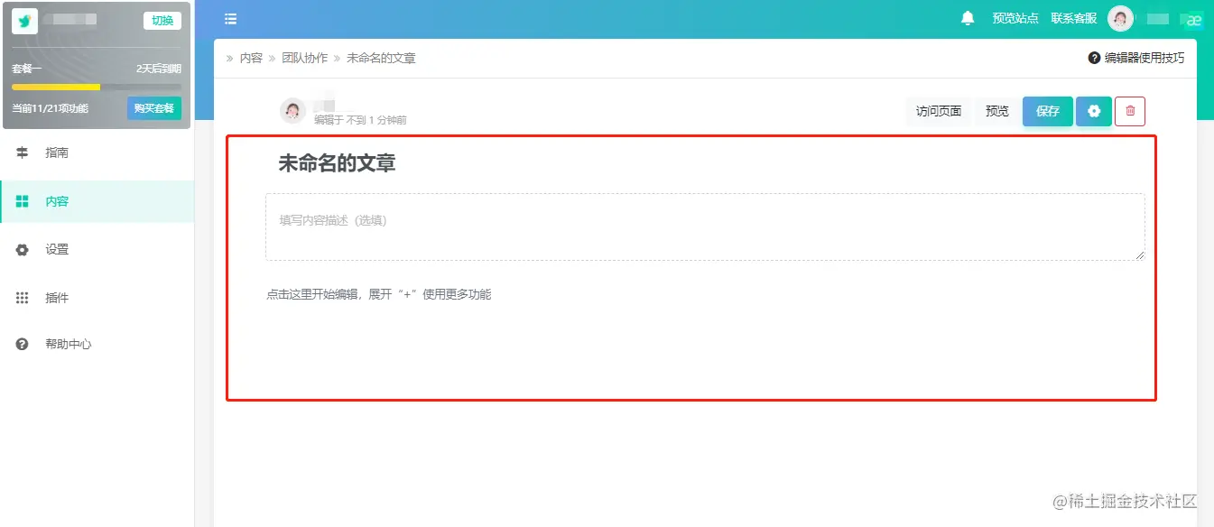 使用一个新产品的第一步就是注册自己的账号,然后就是创建站点,这是Baklib和其它产品不同的地方,使用者通过创建自己的站点再创建内容。